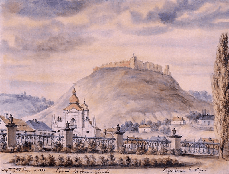 В своих отрядах бернардинцев, католический орден, содержал еще дальний родственник Януша Вишневецкого Юрий Збаражский. Именно он приступил к строительству этого костела и монастыря. Но после внезапной смерти в 1631 году продолжил начатый наследник и кременецкий староста Януш Вишневецкий. Его жена, Екатерина Евгения Тишкевич из русского боярского рода, поддержала мужа по этому важному делу. Они выделили средства в завершение храмово-монастырского комплекса.